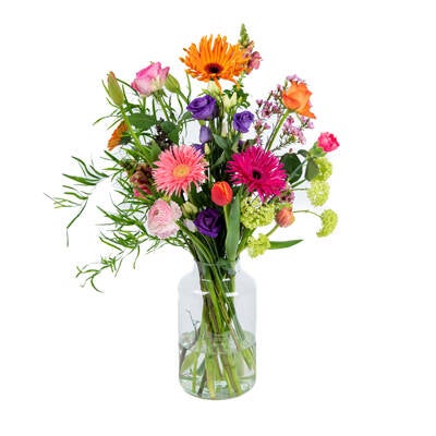 In overleg mogelijk om de bloemen op een leenvaas te leveren.