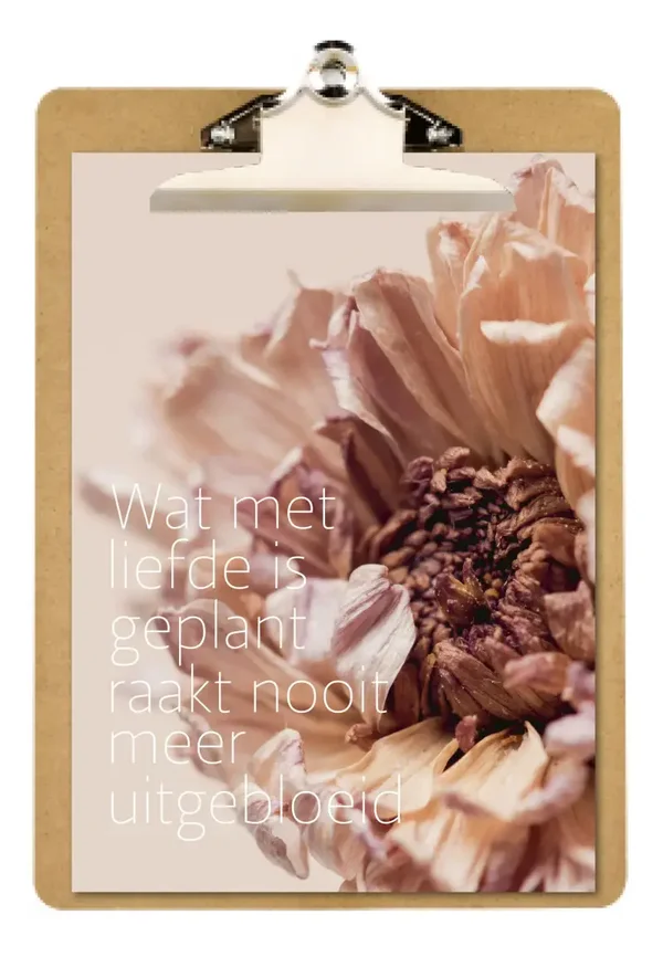 Poster 'Met liefde geplant' is een sprekende tekst om de dag te beginnen. Kleine posters zijn razend populair om kado te geven, maar ook om jezelf kado te geven. Ze zijn leuk voor aan de muur, maar ook zeer geschikt om neer te zetten in bijvoorbeeld een houten standaard. Een ideaal product voor in uw interieur. Onze posters zijn uitgevoerd op A4 formaat en passen precies op een klembord. Hartstikke leuk om als cadeau weg te geven!
