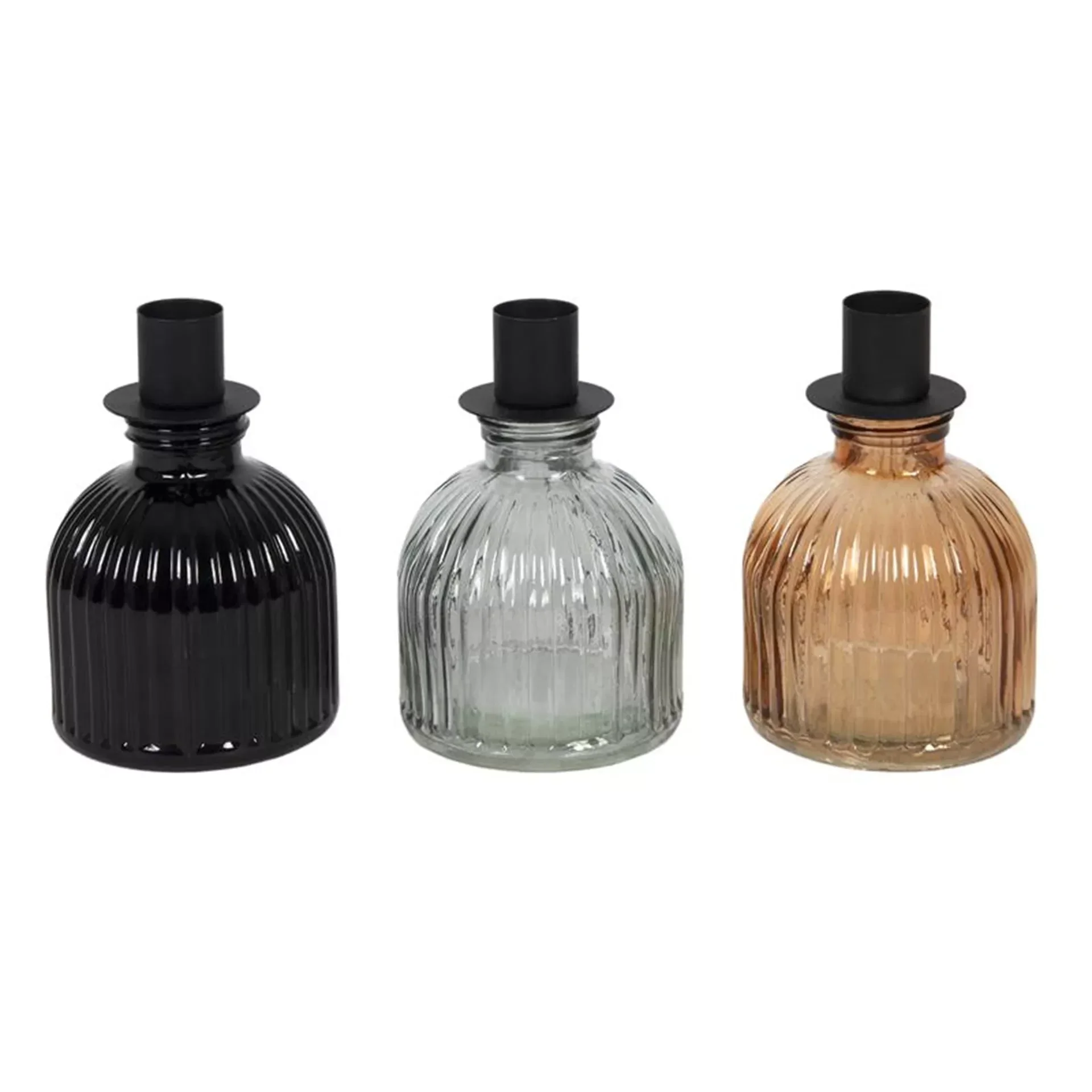 Kandelaar Ø7,5x12cm glas zwart/grijs/bruin