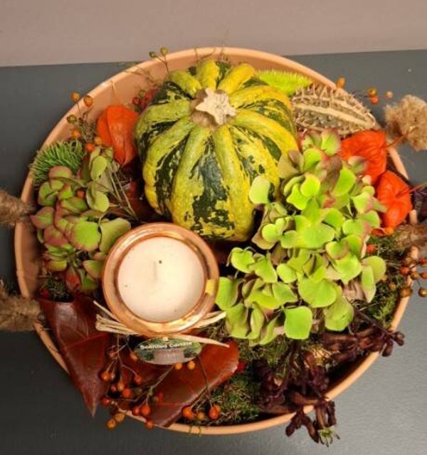 Deze schaal brengt warmte, sfeer & gezelligheid in de mooiste kleuren van de herfst. Inclusief waxinelicht.