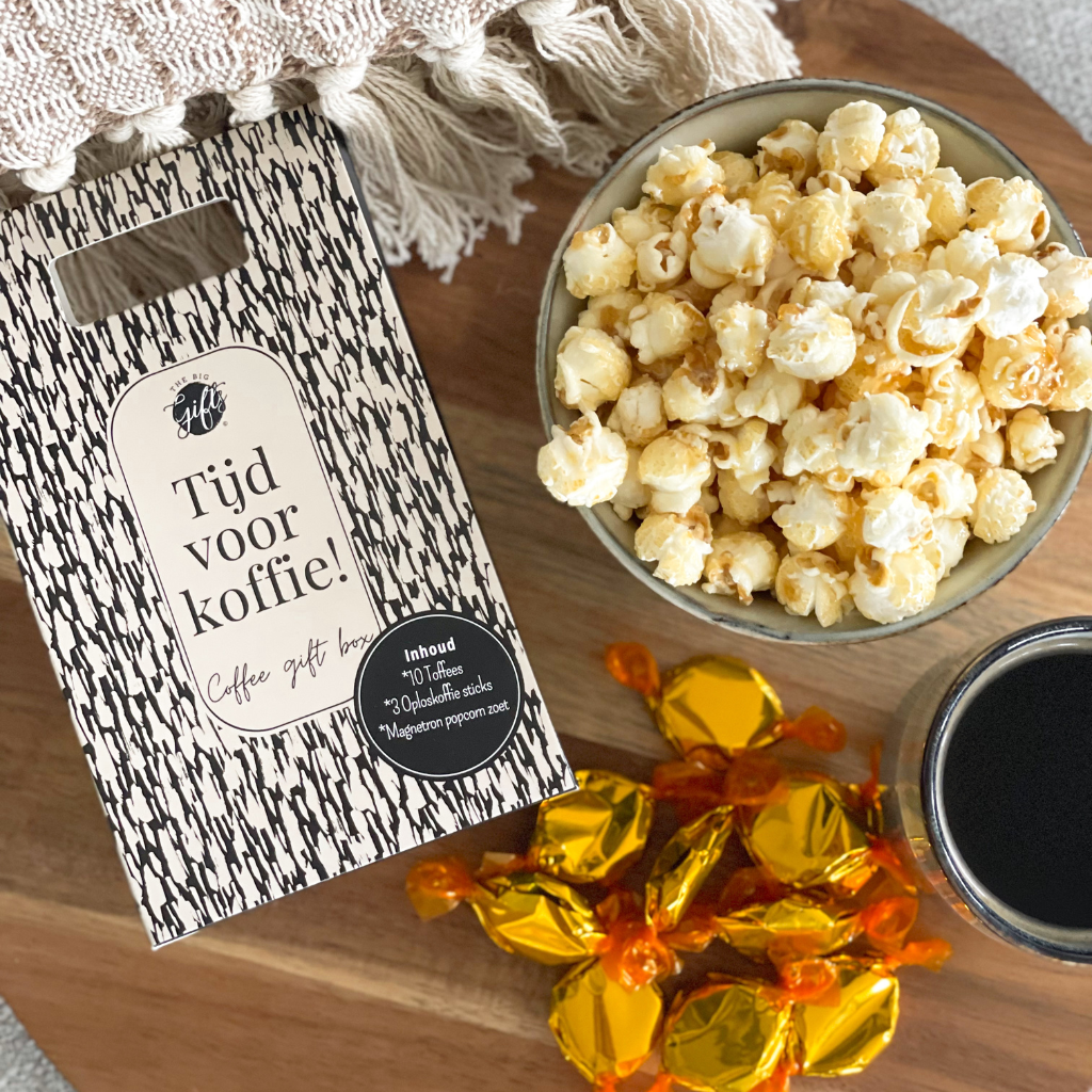 Geef een onvergetelijk cadeau met de Coffee Gift Box – 'Tijd voor koffie!' van The Big Gifts! Deze luxe verzameling is perfect voor elke koffieliefhebber en biedt twee verschillende cadeauboxen, elk gevuld met heerlijke lekkernijen die zorgen voor een warm en gezellig moment.