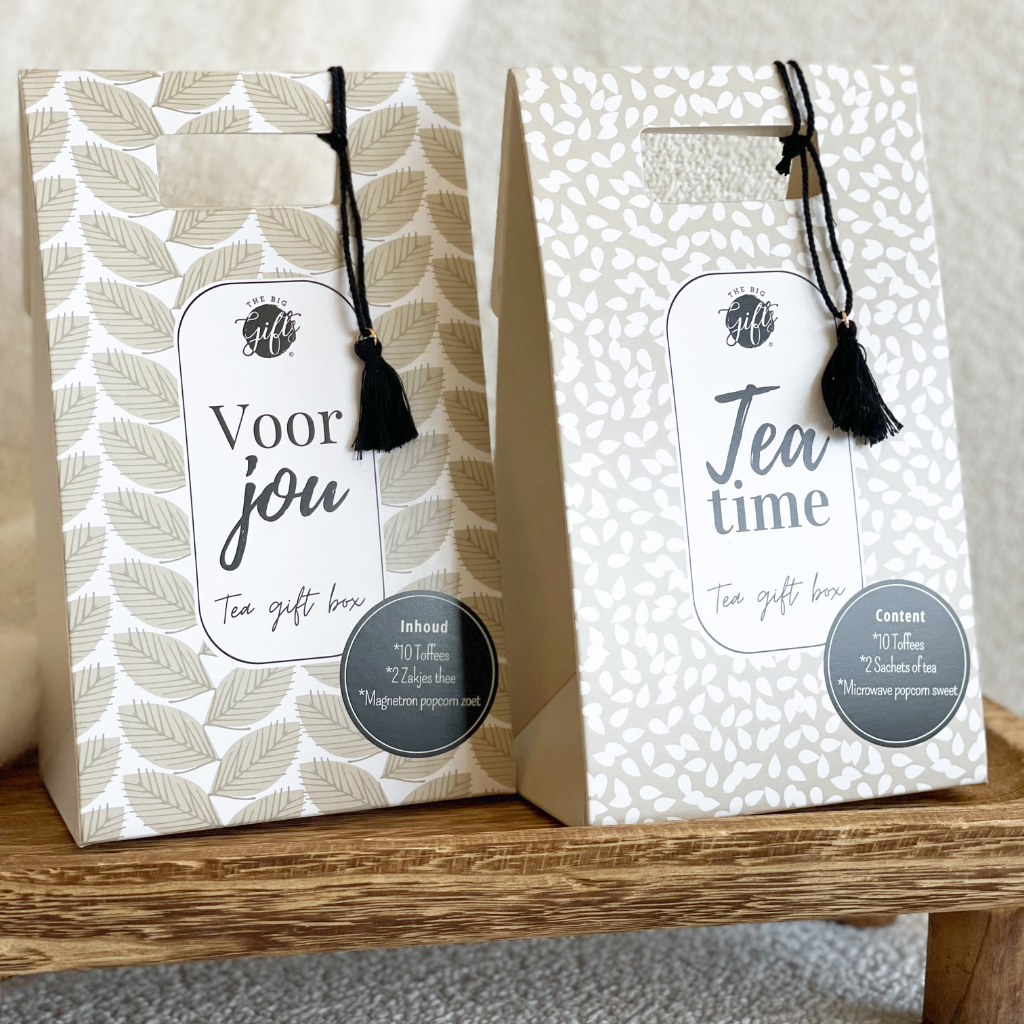 Geef een onvergetelijk cadeau met de Tea Gift Box – 'Voor jou!' van The Big Gifts! Deze luxe verzameling is perfect voor elke theeliefhebber en biedt twee verschillende cadeauboxen, elk gevuld met heerlijke lekkernijen die zorgen voor een warm en gezellig moment.